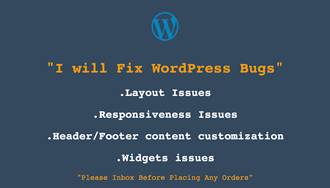 Hello Buyer !If you already have a wordPress website up and live but have some issues/bugs that you want to get resolved you are viewing just the right gig.