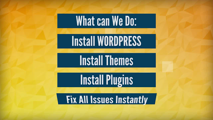 I will Install WORDPRESS, Themes, Plugins or Fix Issues Instantly. If you are looking for someone to perform any wordpress job, you are at the right place. I will provide my best skills and services to fix the complex issues and provide the stat-of-the art work. I will assure you that the my skills and services will meet quality and standard. My objective is to satisfied the client with best of my knowledge and skills. Expert level job will be performed here.- Install Wordpress